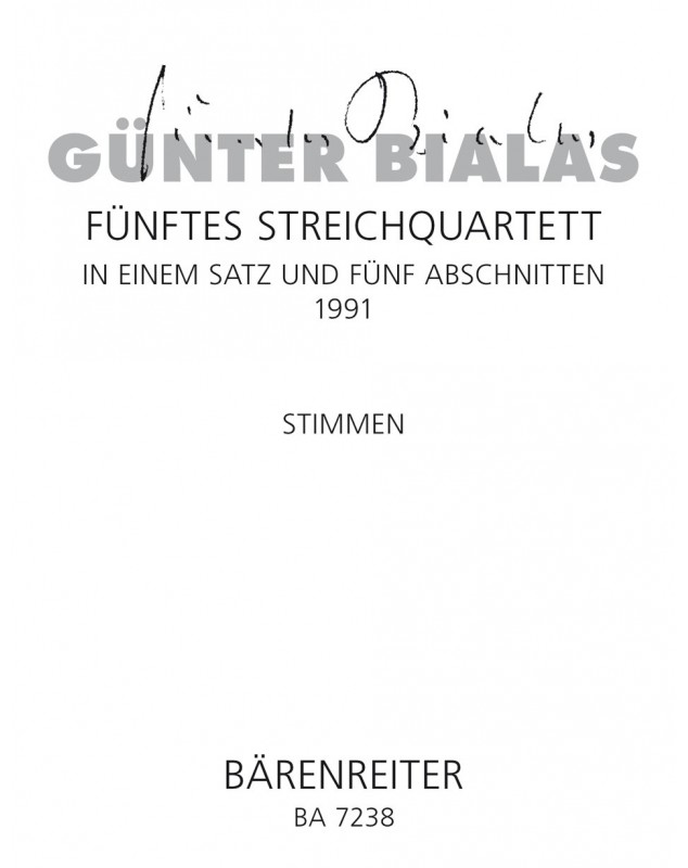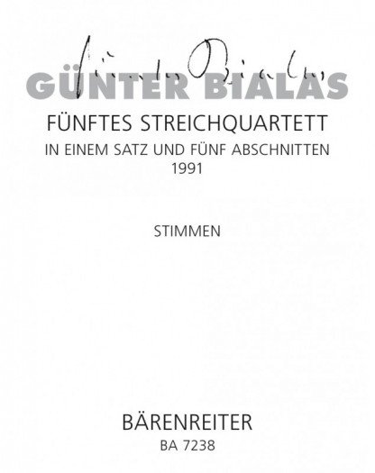 Günter Bialas String Quartet in einem Satz und fünf Abschnitten Quatuor à Cordes Conducteur