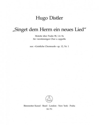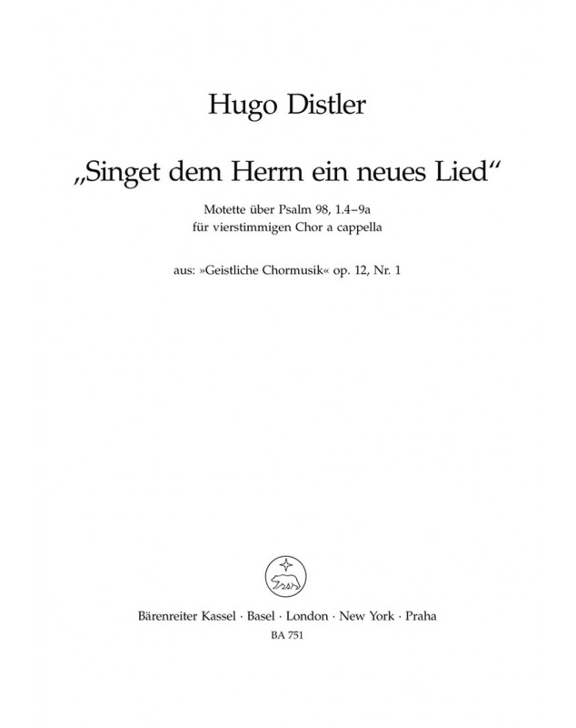 Hugo Distler Singet dem Herrn ein neues Lied SATB Partition German
