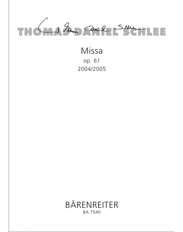 Thomas Daniel Schlee Missa Baritone, Mixed Choir and Orchestra Conducteur