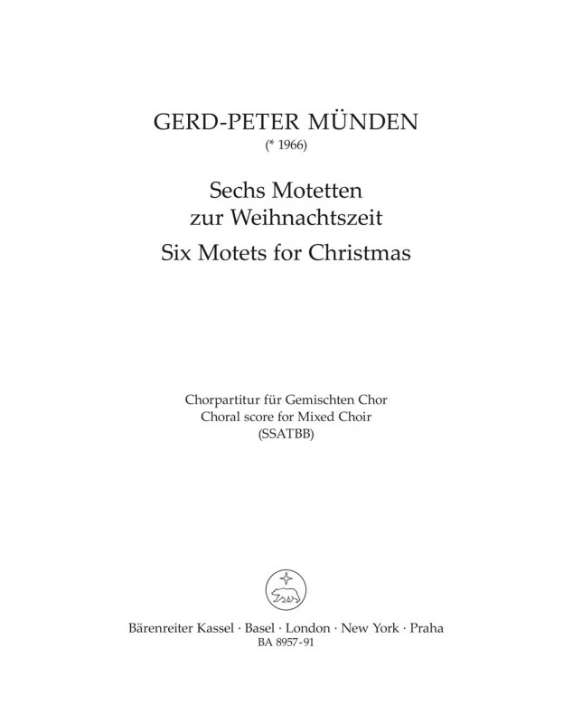 Gerd-Peter Münden Six Motets for Christmas SSATBB Conducteur chorale