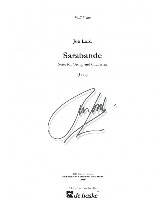Jon Lord Sarabande Suite for Group and Orchestra (1975) Orchestra Conducteur English