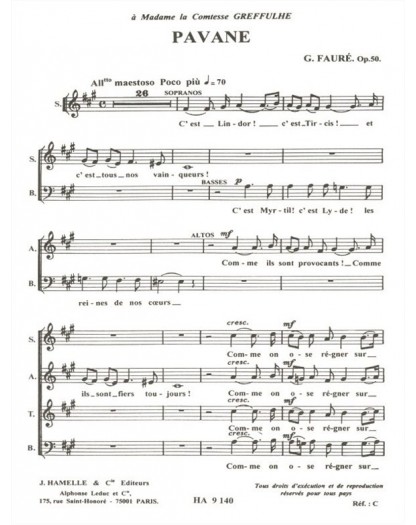 Gabriel Fauré Pavane Op.50 SATB Conducteur chorale