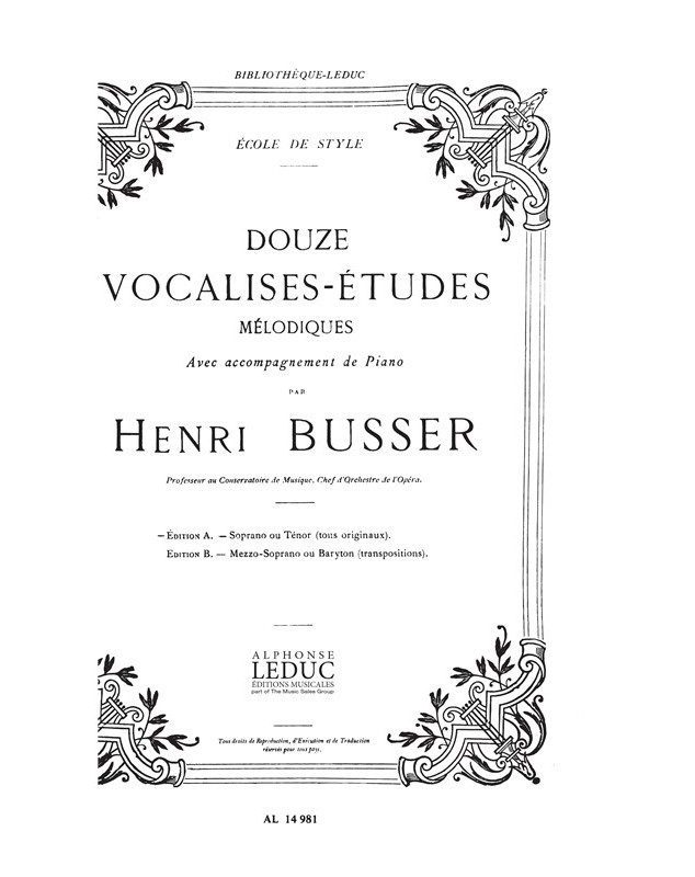 Henri Busser: 12 Vocalises-Etudes - Edition A