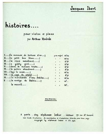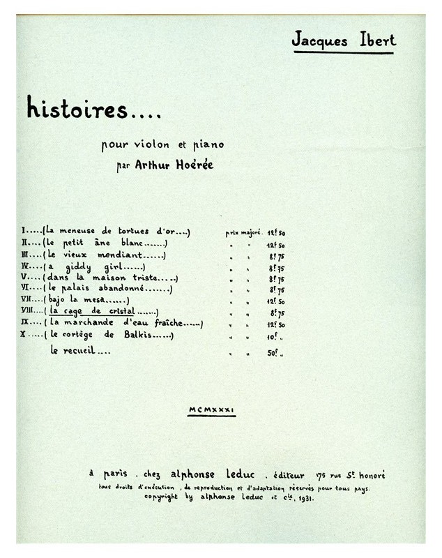 Jacques Ibert La Cage de Cristal Violon et Piano Conducteur