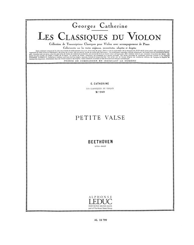 Ludwig van Beethoven Petite Valse Classiques No.289 Violon et Piano Conducteur