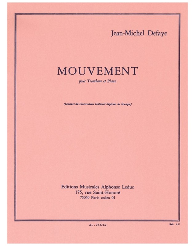 Jean-Michel Defaye Mouvement Trombone et Piano Recueil
