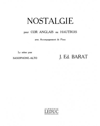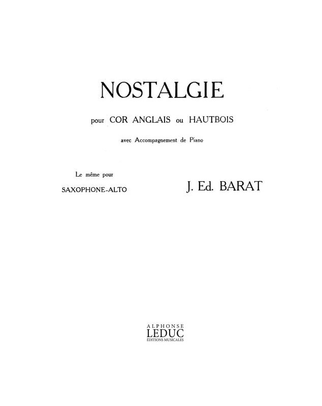 Jacques Barat Nostalgie Hautbois et Piano Recueil