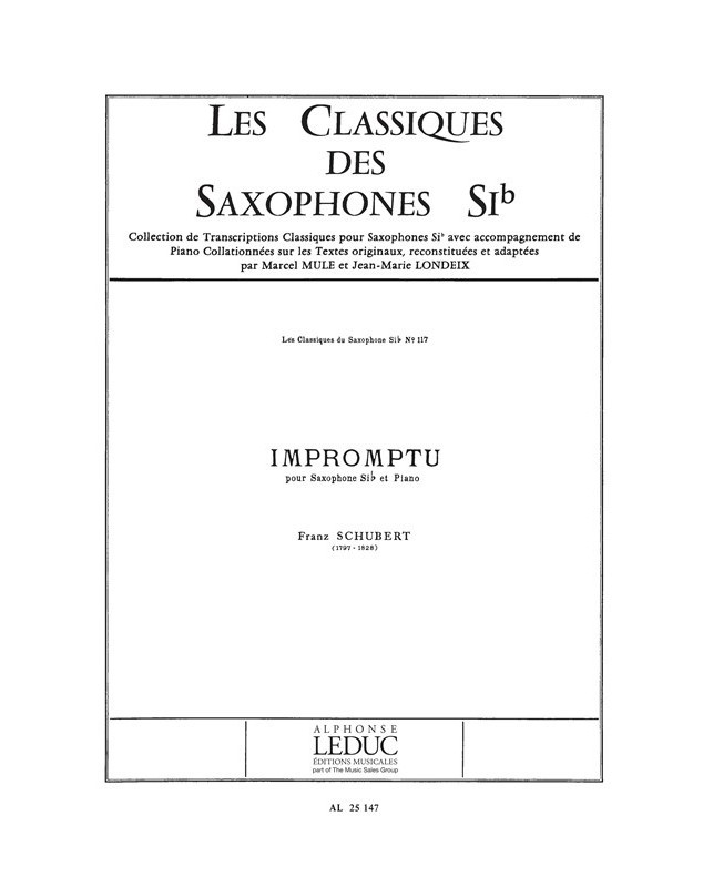 Franz Schubert Impromptu Bb Saxophone Recueil