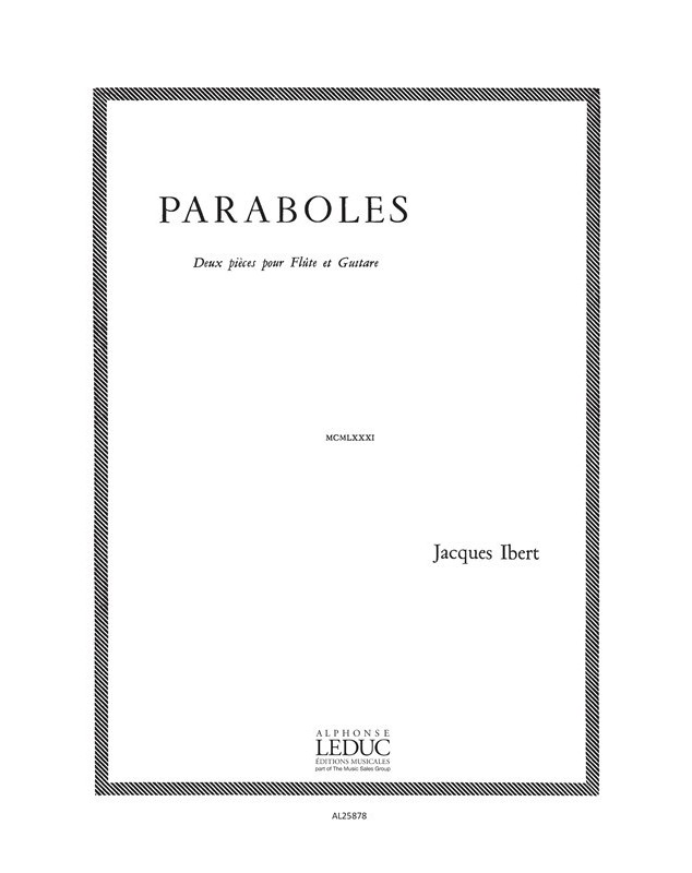 Jacques Ibert Paraboles Flûte Traversière et Guitare Recueil