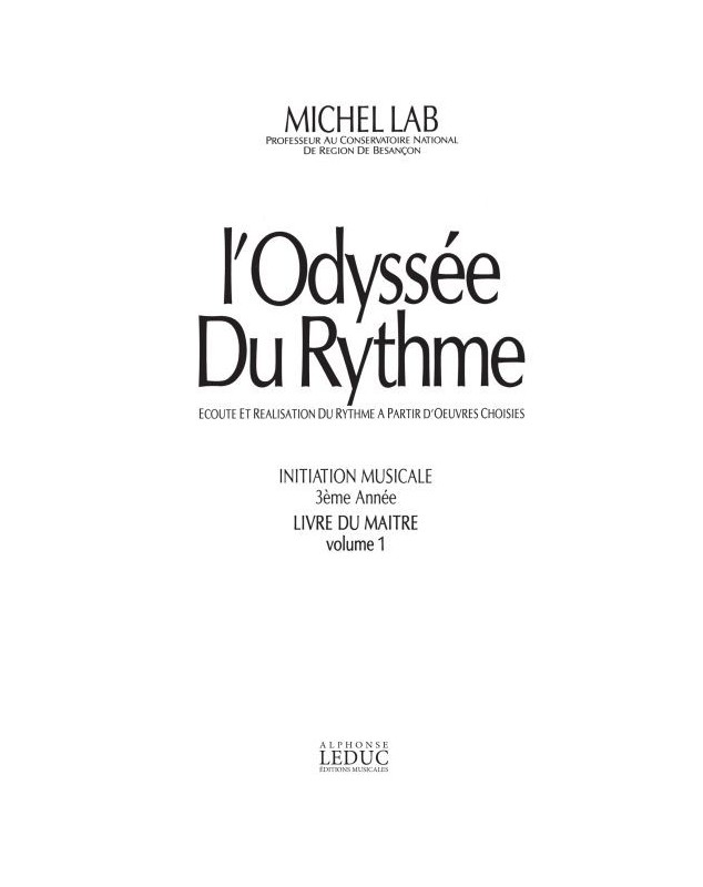 Odyssee Du Rythme Volume 1 Initiation Musicale 3An