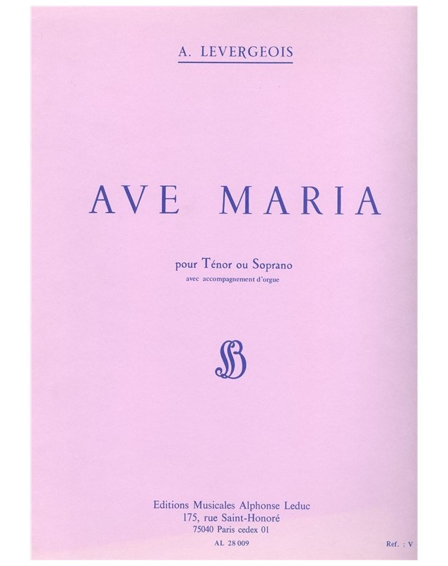Levergeois Ave Maria Tenor Or Soprano Solo & Organ