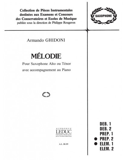 Armando Ghidoni Melodie Saxophone Et Piano - Collection Rougeron Saxophone et Piano Recueil