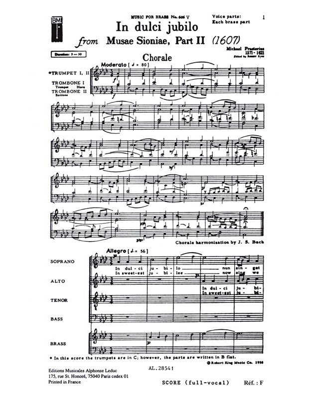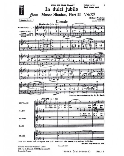 Praetorius In Dulci Jubilo Quatuor de Cuivres Recueil