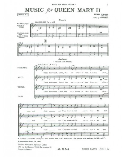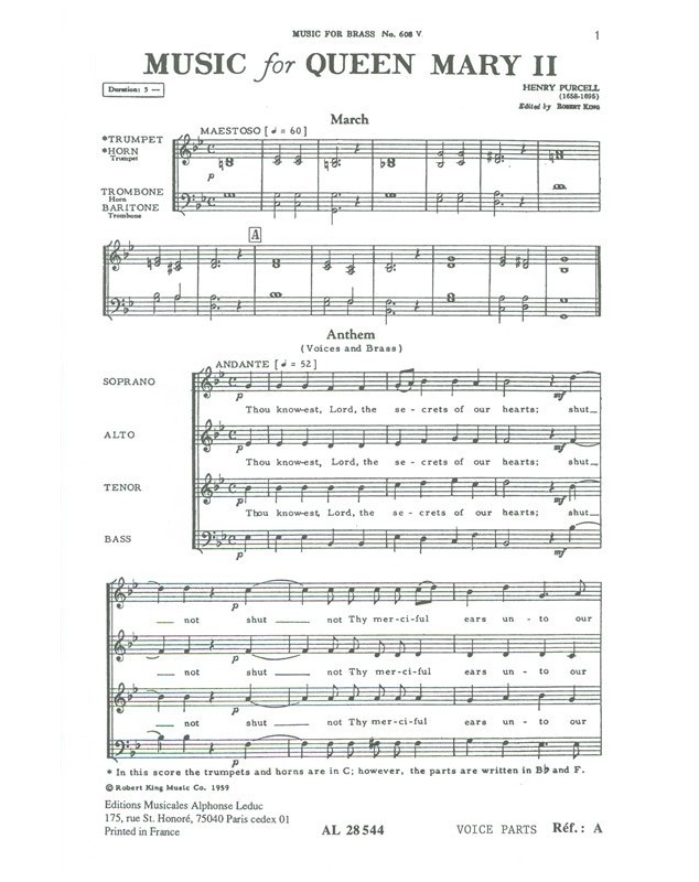 Henry Purcell Funeral Music For Queen Mary II Quatuor de Cuivres Recueil