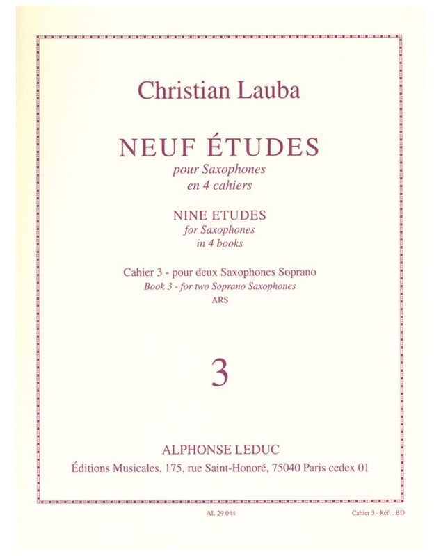Neuf Etudes (9) pour Saxophones, cahier 3