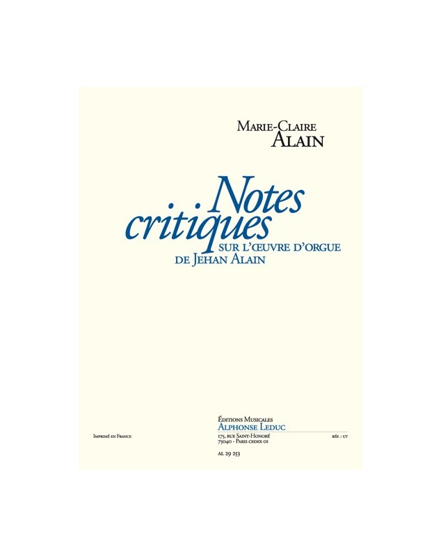 Notes critiques sur l'Oeuvre d'Orgue de J. Alain