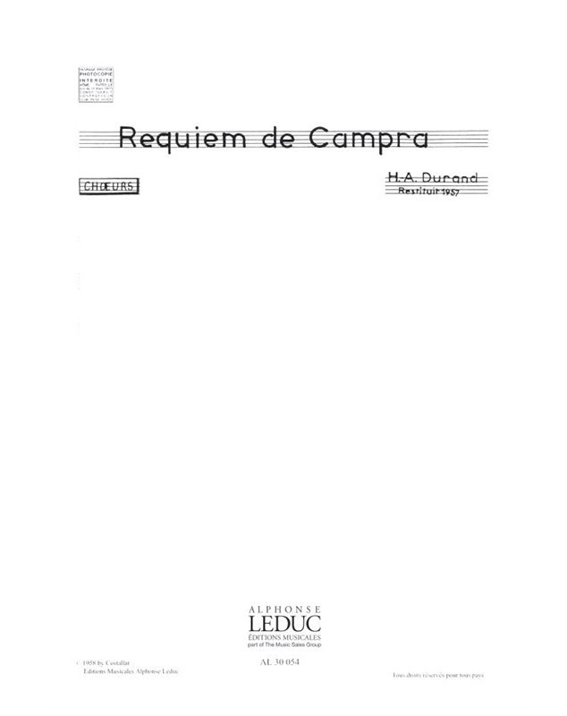 André Campra Requiem Choeur - Satbb SATBB Recueil