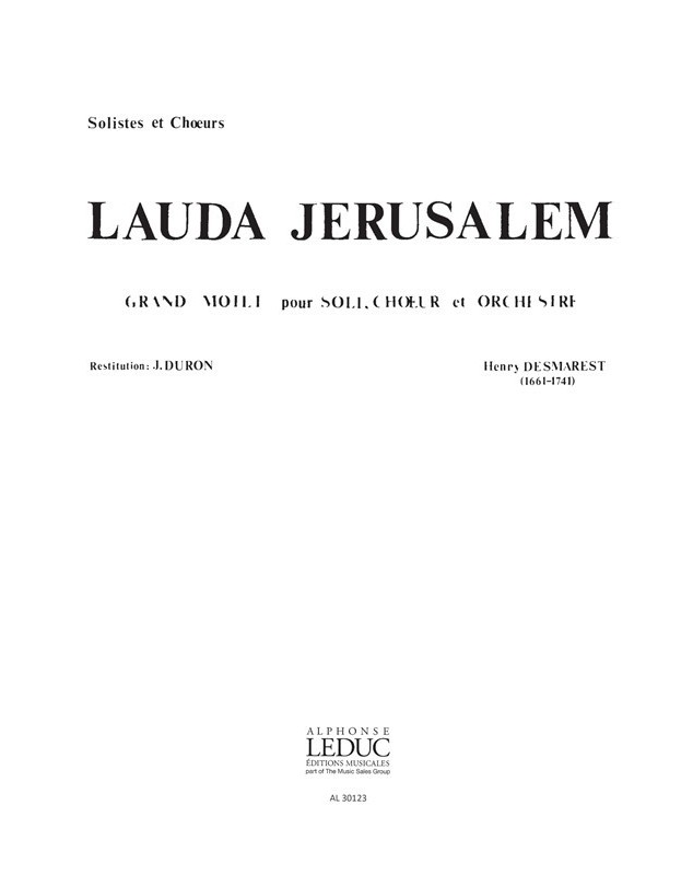 Henri Desmarets Lauda Jerusalem Soli-Choeur - Satbb Vocal Recueil