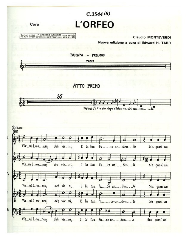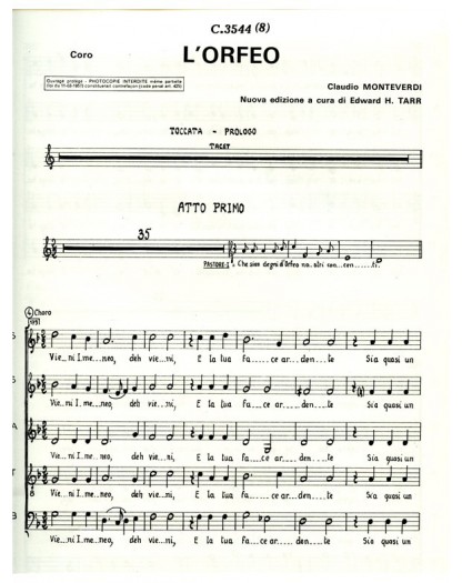 Claudio Monteverdi Orfeo Choeur mixte Vocal Score