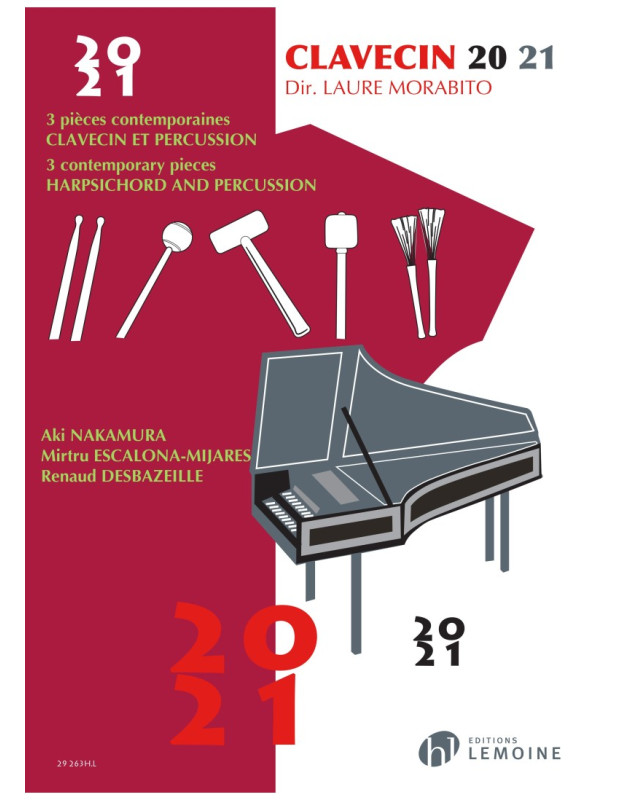 NAKAMURA Aki : Furin (cloche à vent) pour clavecin, glockenspiel et cymbale - ESCALONA-MIJARES Mirtru : Varnam pour clavecin à quatre mains et deux percussionnistes - DESBAZEILLE Renaud : A' Meya Bal' Endoro pour clavecin et marimba ayant tous les deux 5 octaves