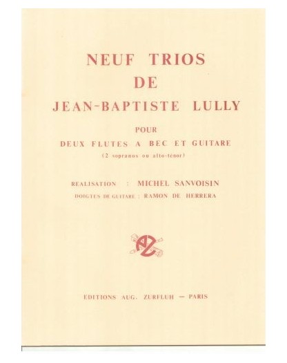 Jean-Baptiste Lully Neuf Trios Jean-Baptiste Lully Recorder Recueil