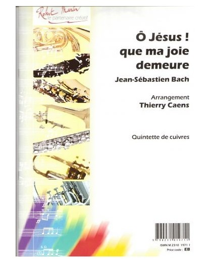 Johann Sebastian Bach Thierry Caens O Jésus Que Ma Joie Demeure Ensemble de Cuivres Score + Parties