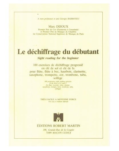 Dijoux Le Déchiffrage du Débutant Sight Reading for the Beginner Wind Instruments Recueil