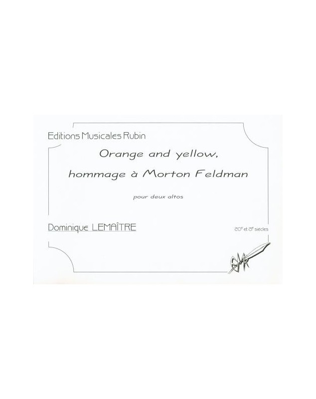 Dominique Lemaître Orange and Yellow, Hommage à Morton Feldman Pour Deux Altos 2 Violas Recueil