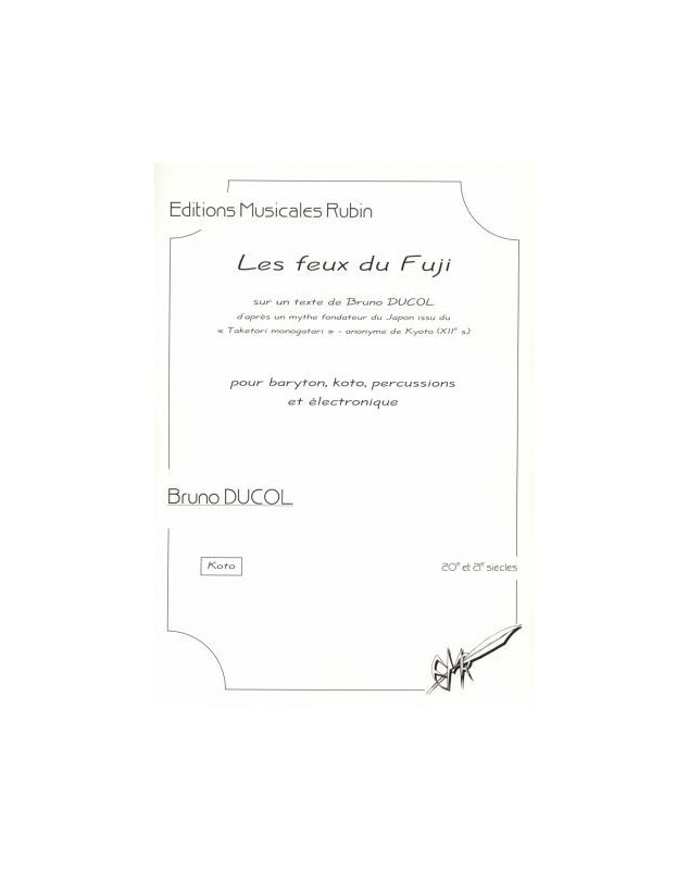 Bruno Ducol Les Feux du Fuji Pour Baryton, Koto, Percussion and Ensemble Chamber Ensemble Score + Parties