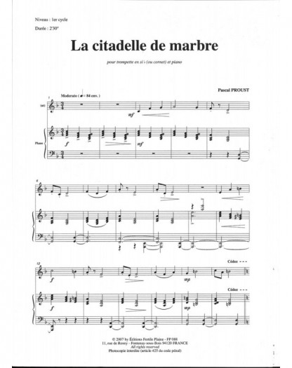 La Citadelle De Marbre Pascal Proust Trompette et Piano Recueil + Partition