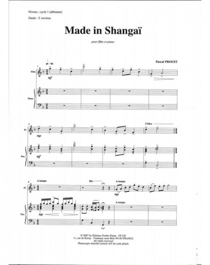 Made In Shangai Pascal Proust Flûte Traversière et Piano Recueil + Partition