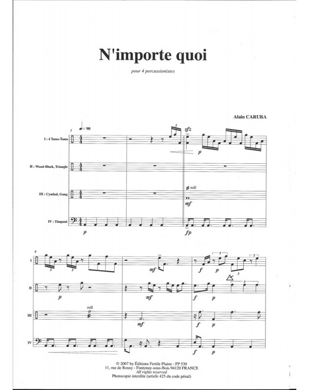 N'Importe Quoi? Alain Caruba Percussion Quartet Recueil