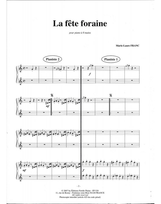 La Fete Foraine Marie-Laure Franc Piano 8 Hands Set de partitions