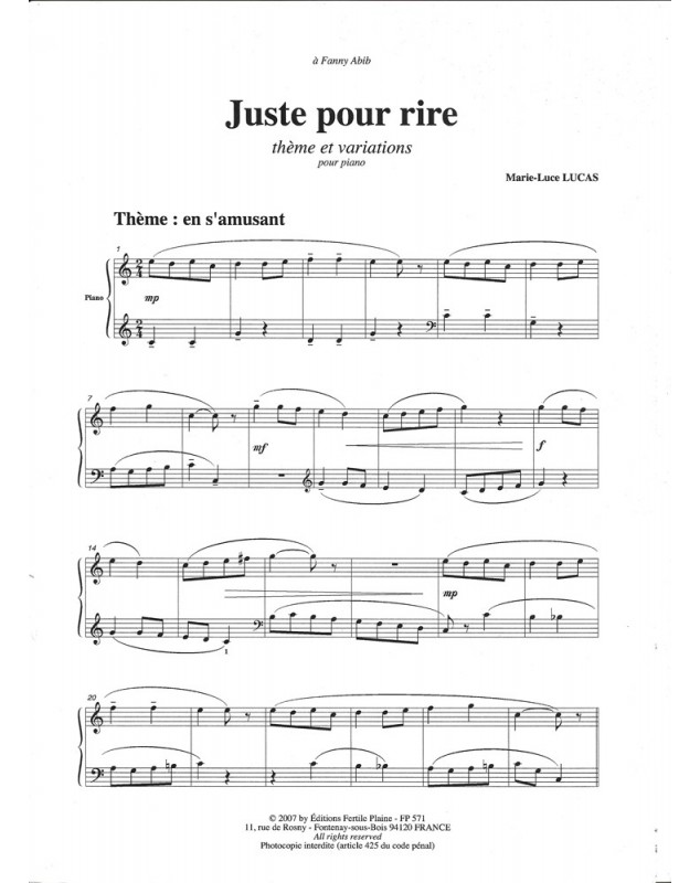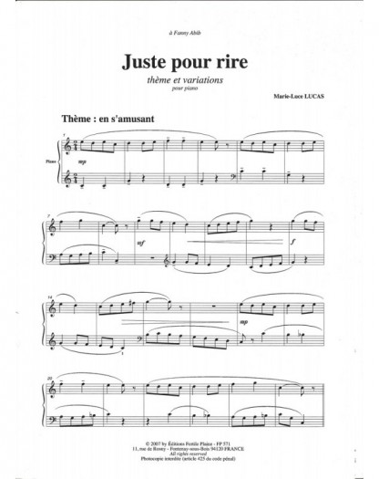 Juste Pour Rire Marie-Luce Lucas Piano Recueil