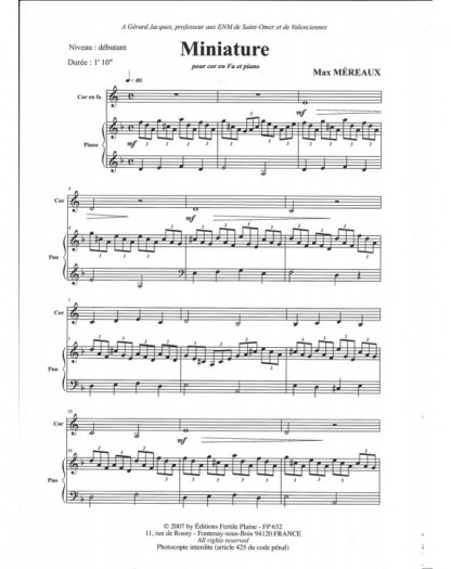 Miniature Max Mereaux Cor et Piano Recueil + Partition