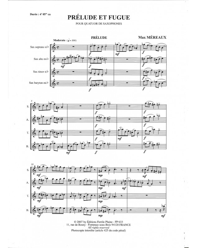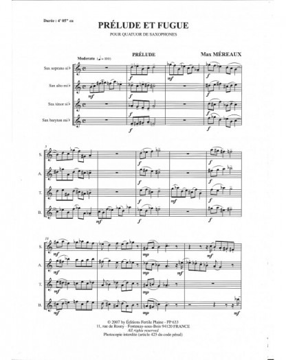 Prelude et Fugue Max Mereaux 4 Saxophone's Set de partitions