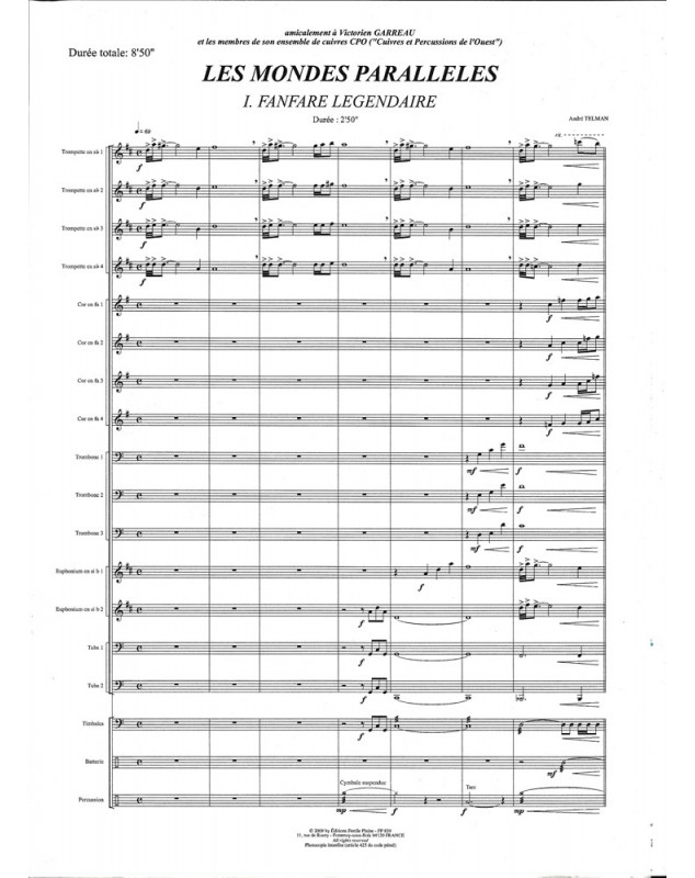 Les Mondes Parallèles André Telman Wind Ensemble Set de partitions