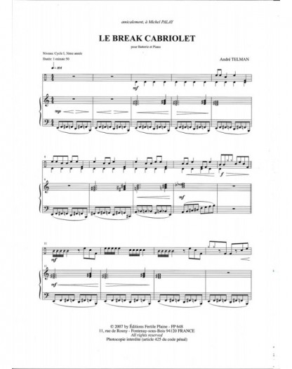 Le Break Cabriolet André Telman Drum Set and Piano Recueil + Partition
