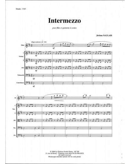 Intermezzo Jérôme Naulais Flute and String Quintet Set de partitions