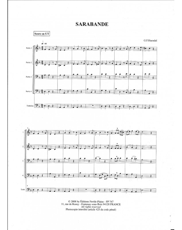 Sarabande André Telman Wind Ensemble Set de partitions