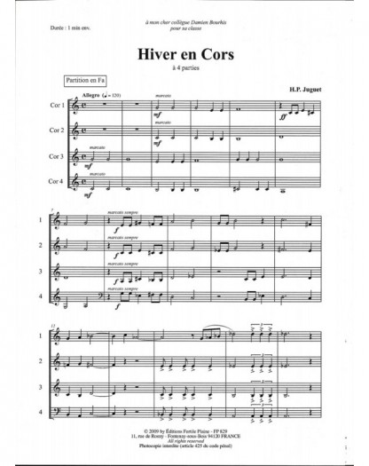 Hiver En Cors Henri-Pierre Juguet Horn Ensemble Set de partitions