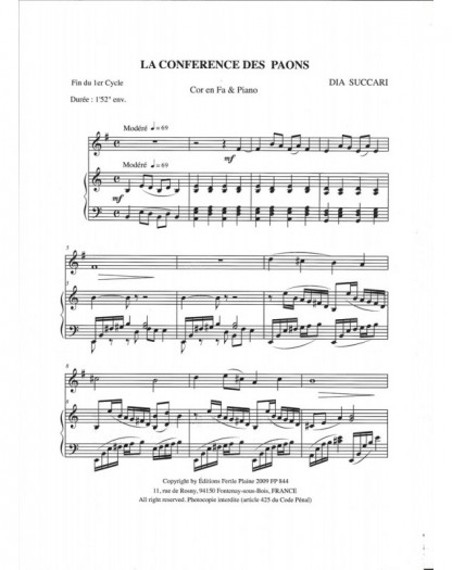 La Conférence Des Paons Dia Succari Cor et Piano Recueil + Partition