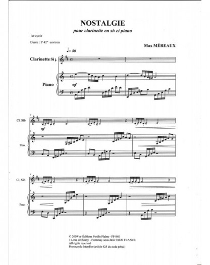 Nostalgie Max Mereaux Clarinette et Piano Recueil + Partition