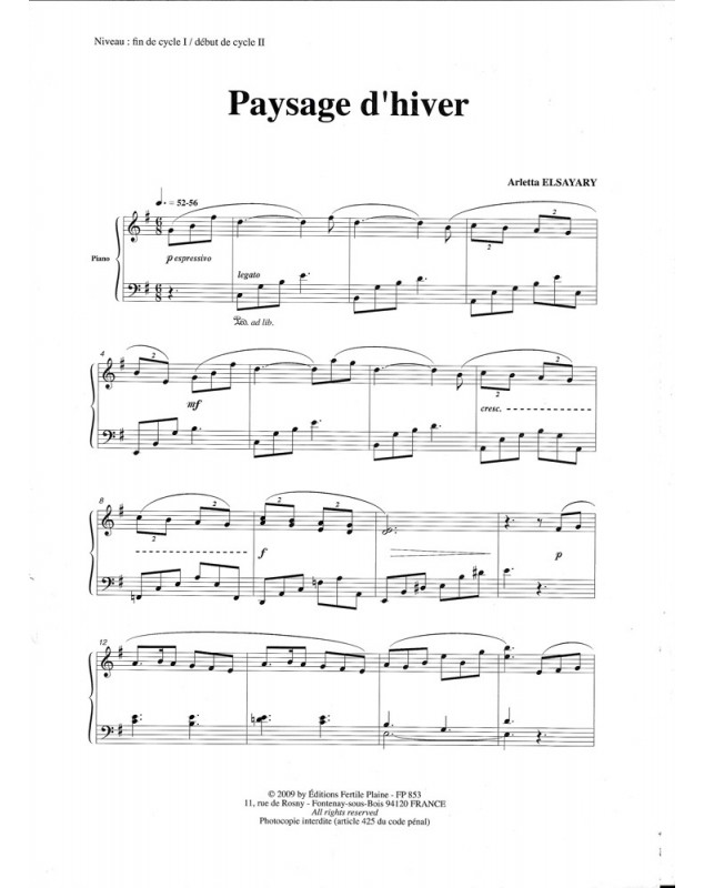 Paysage D'hiver Arletta Elsayary Piano Recueil
