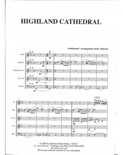 Highland Cathedral Jacky Therond Wind Ensemble Set de partitions