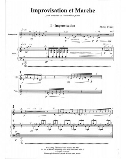 Improvisation et Marche Michel Delage Trompette et Piano Recueil + Partition