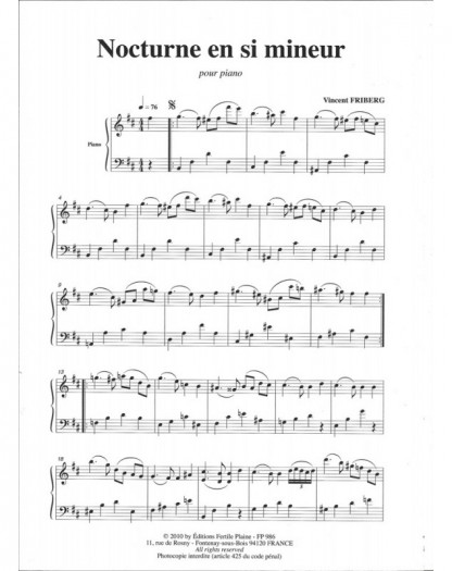 Nocturne En Si Mineur Vincent Friberg Piano Recueil