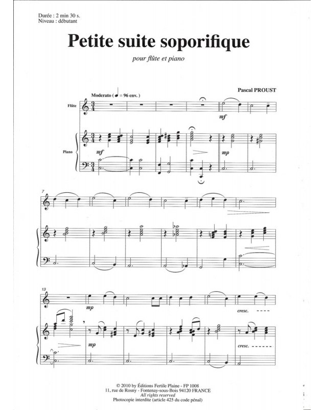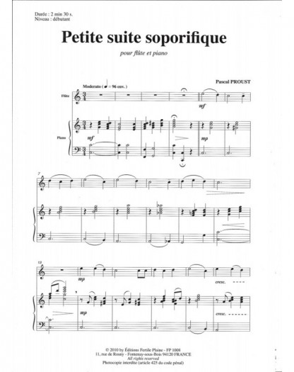 Petite Suite Soporifique Pascal Proust Flûte Traversière et Piano Recueil + Partition