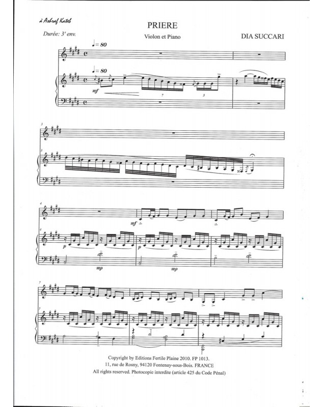 Prière Dia Succari Violon et Piano Recueil + Partition