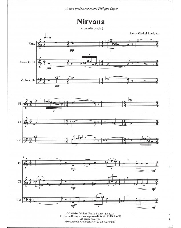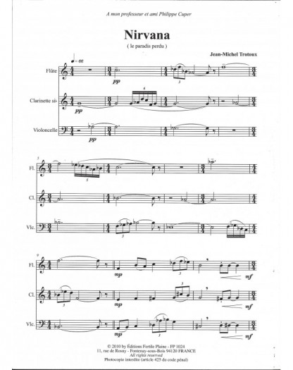 Nirvana Jean-Michel Trotoux Flute, Clarinet and Cello Set de partitions